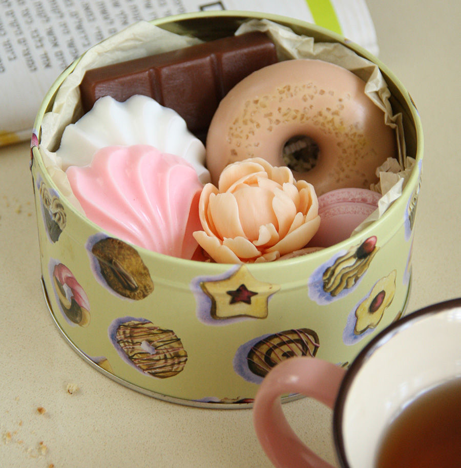 Подарив такую коробочку "сладостей" вы сможете приятно удивить любого сладкоежку. Каждое мыло обладает сладким, приятним ароматом и выполненно на столько реалистично, что вам самим захочется откусить кусочек. Мыльный пончик посыпан солью из Мертвого моря, таким образом это мыло и красивое, и полезное. Макаруны, шоколад, зефир, пончик и мини-пион из мыла ручной работы 🎀 Аромат - персик, кокос, шоколад 🎀 Диаметр коробки - 13,5 см 🎀 Миниподарок к каждому заказу! 🔶 Срок изготовления - от 3 до 7 дней 🔶 Коробка для мыла может отличаться в зависимости от наличия 🔶 Доставка: курьером или самовывоз из Хайфы