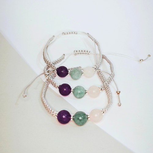 Нежный браслет, созданный для спокойствия и гармонии. Аметист помогает снять стресс и тревогу, амазонит мягко успокаивает, а розовый кварц наполняет комфортом и теплом. Идеален для вечернего расслабления и восстановления внутреннего баланса. Материалы: натуральный аметист, амазонит, розовый кварц, металлические разделители Размер: универсальный на взрослую руку за счёт сплетённых нитей. Доставка: почта/ самовывоз из Нешера и Хайфы.