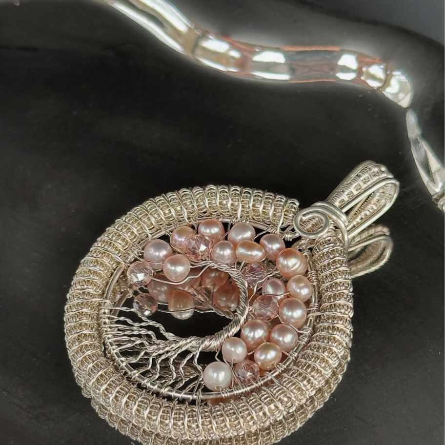 Кулон дерево жизни с жемчугом и кристаллами из стекла. В работе использовалась проволока 985 и 999 пробы. К кулону прилагается серебряная цепочка 985. Высота кулона 5.8 см, ширина 4.2 см. В наличии 1 кулон, возможен повтор. срок изготовления 3-7 рабочих дней. Небольшие детали, при повторе могут отличаться. Доставка по почте, курьером, самовывоз из Тель Авива.